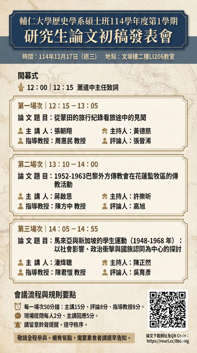 » 114學年度第1學期碩士班研究生「論文初稿發表會」